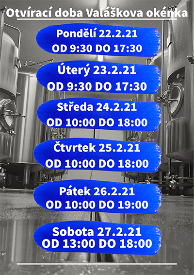 Otevírací doba 22.2 2021 - 27.2 2021 |