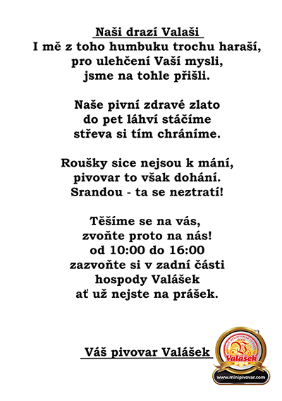 Vážení zákazníci zlatavého moku, v době epidemie koronavirem pro vás zavádíme rozvoz PET lahví až do domu po Vsetíně a okolí 15 km.